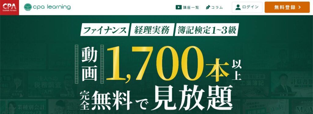 CPAラーニングは、簿記の動画講義を無料で視聴できます。